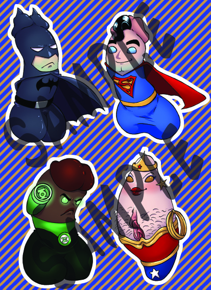 Cartela com Super Caralho, Batcacaralho, Caralhão Verde e Boceta Maravilha